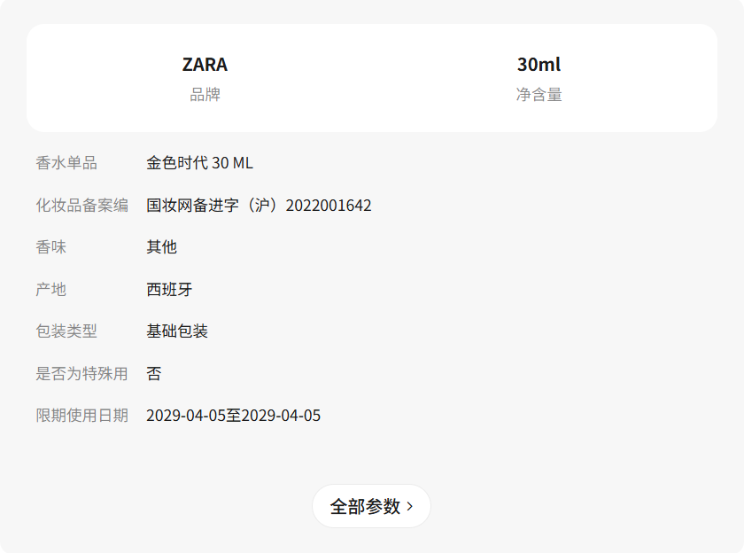 ZARA新款 女士 金色時代香水 30 ML 0110572 999