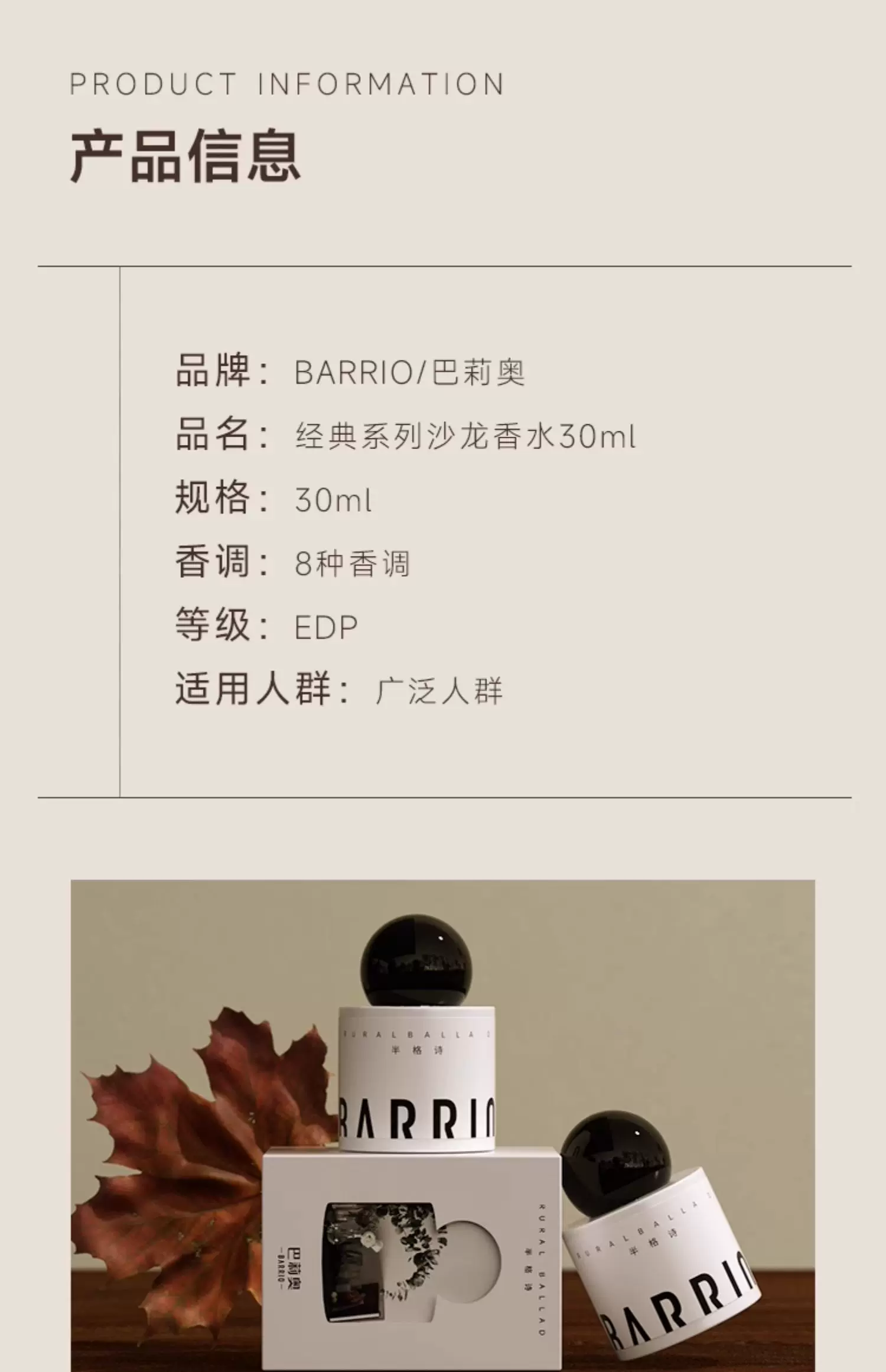 BARRIO巴莉奧經典沙龍香水30ml女士送禮持久留香