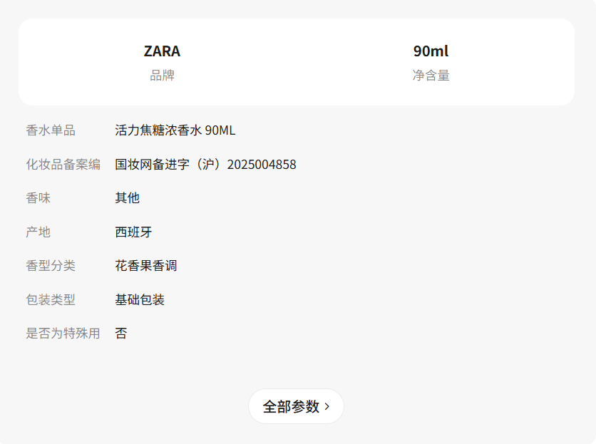 ZARA新款 女士 活力焦糖濃香水 90ML 0120612 999